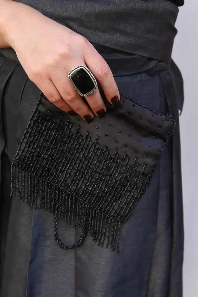 Bolsa preta miçangas