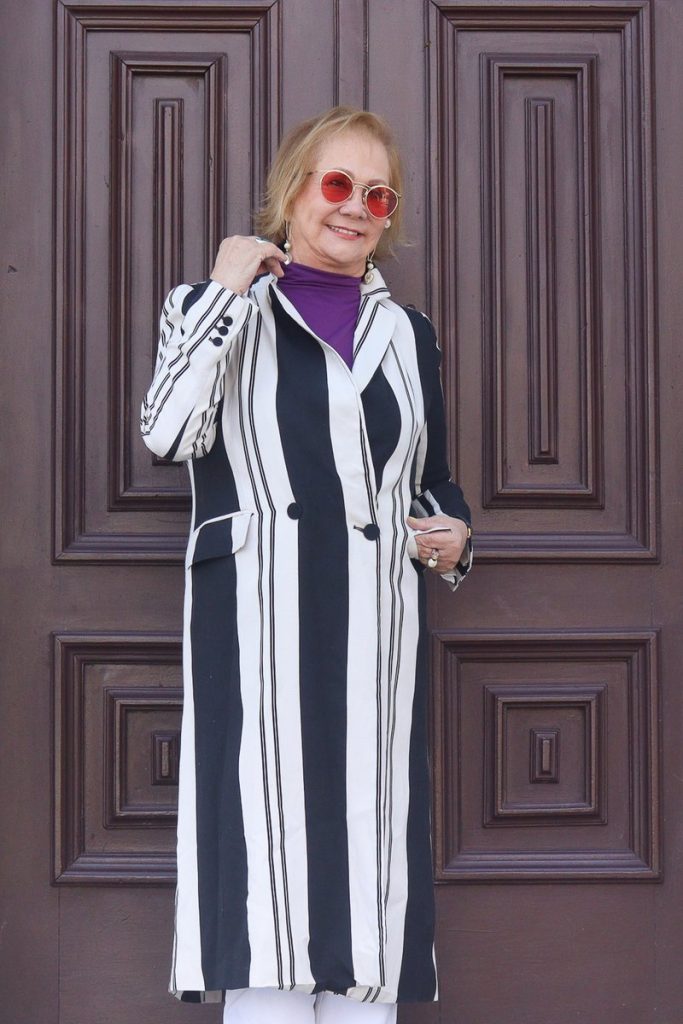 Casaco longo listrado off-white e preto